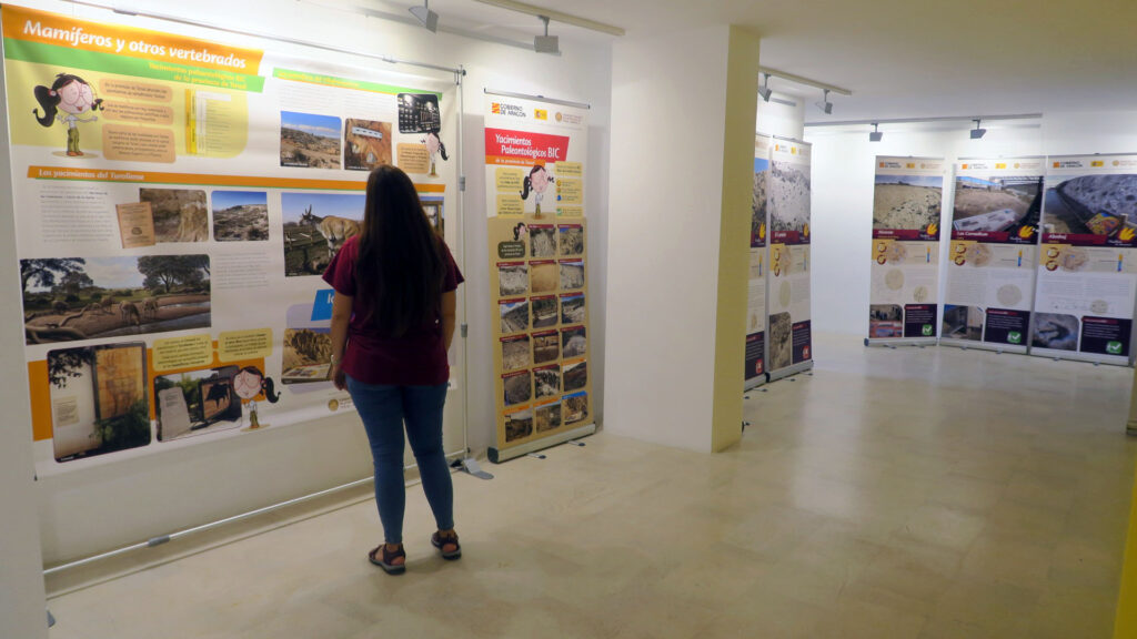 La muestra “Los yacimientos paleontológicos BIC de la provincia de Teruel destaca los aspectos científicos más interesantes de los 17 yacimientos paleontológicos BIC de la provincia e informa sobre las posibilidades educativas y de desarrollo territorial que ofrece este patrimonio paleontológico en varias comarcas y municipios de Teruel.