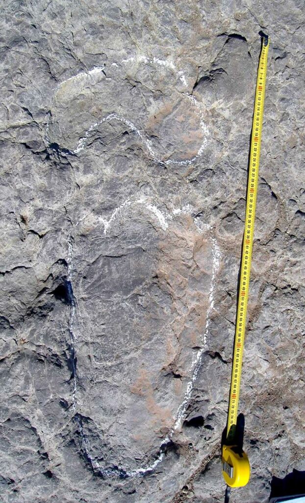 Deltapodus ibericus significa “pie triangular de Iberia”. Se trata de pisadas producidas por estegosaurios, que eran dinosaurios cuadrúpedos y comedores de plantas caracterizados por poseer dos filas de placas desde el cuello hasta el final de la cola. Estas huellas fueron definidas por científicos de la Fundación Conjunto Paleontológico de Teruel-Dinópolis en el año 2010 convirtiendo a El Castellar en uno de los pocos yacimientos en el que se han identificado huellas de estegosaurios.