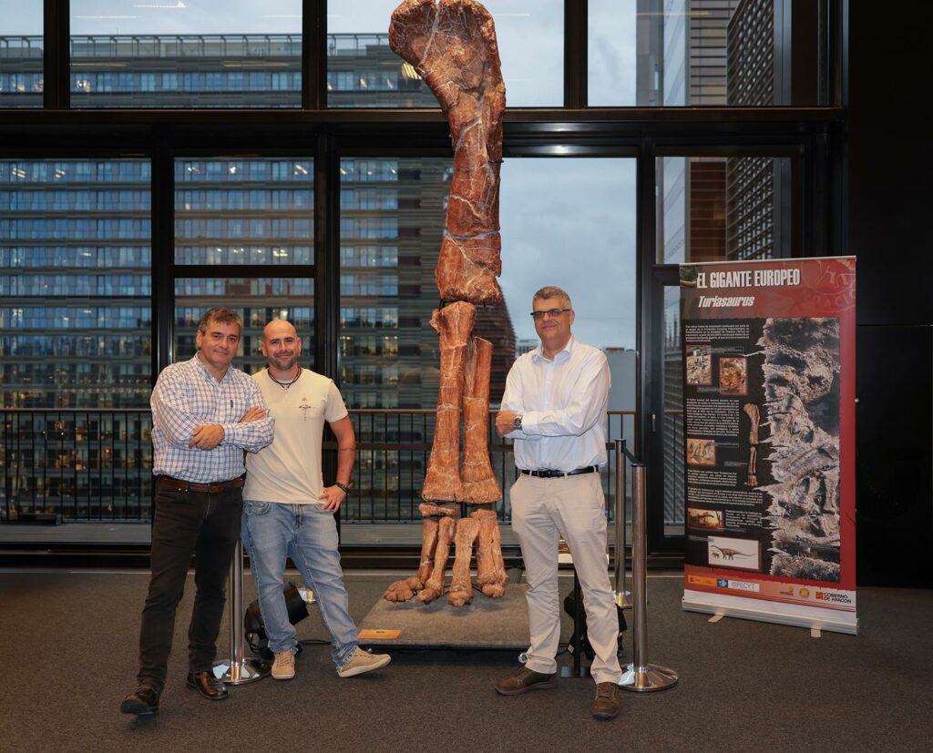 La réplica de una extremidad de más de 3,5 metros de longitud de Turiasaurus, conocido como el ‘Gigante Europeo’, ha pisado fuerte en el auditorio elegido para la ocasión, junto con su cráneo y su cabeza.