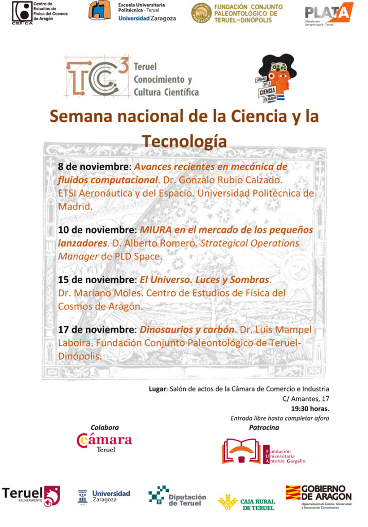 Este es el programa de las cuatro conferencias que, en el marco de la de la Semana de la Ciencia en Aragón, se van a desarrollar en el salón de actos de la Cámara de Comercio e Industria de Teruel, los días 8, 10, 15 y 17 de noviembre.