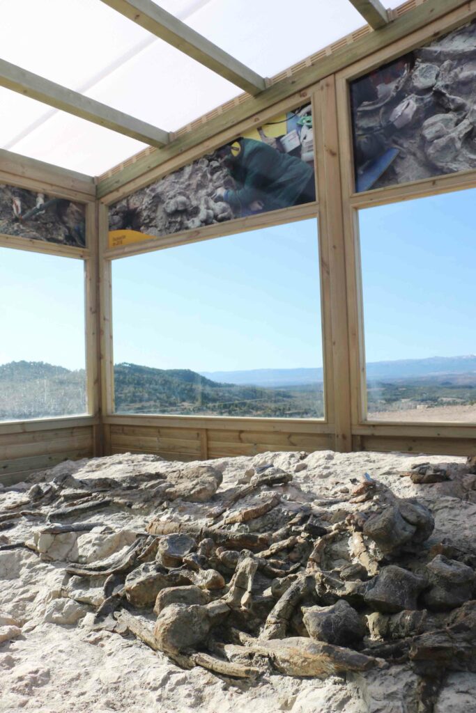 Inaugurada la primera exhibición permanente de España con huesos originales de un dinosaurio en su propio yacimiento. Forma parte de una ruta paleontológica en El Castellar (Teruel)