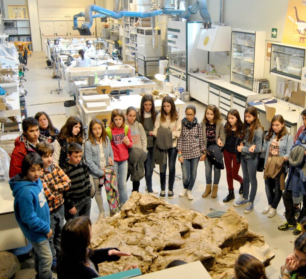 Visita de grupo a uno de los laboratorios de la Fundación Dinópolis.