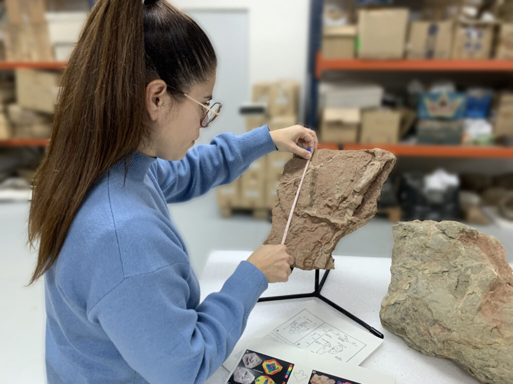 Imagen de gabinete durante el estudio de las icnitas (Andrea Guarido).