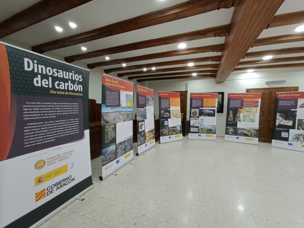 La Fundación Conjunto Paleontológico de Teruel-Dinópolis ha llevado a cabo de forma continua excavaciones en el yacimiento Mina Santa María de Ariño (Teruel) desde el año 2010. De este lugar proceden miles de fósiles pertenecientes a animales y a plantas que habitaron esta zona de Teruel hace unos 110 millones de años, durante el Cretácico Inferior. Con estos antecedentes, la Fundación Dinópolis ha creado una exposición sobre este y otros yacimientos turolenses de la Formación Escucha titulada: “Dinosaurios del Carbón”. Una muestra que se exhibirá en diferentes municipios, siendo su primera parada en Ariño (Teruel).