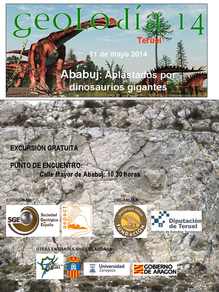 El pasado domingo 11 de mayo tuvo lugar en el municipio de Ababuj el Geolodía 2014 en la correspondiente a la provincia de Teruel. Con el título de «Aplastados por dinosaurios Gigantes: Icnitas de Ababuj» paleontólogos de la Fundación Conjunto Paleontológico de Teruel-Dinópolis dieron a conocer, a cuantos quisieron acercarse a Ababuj para participar de la actividad, los yacimientos de huellas de dinosaurios (técnicamente conocidas como icnitas).