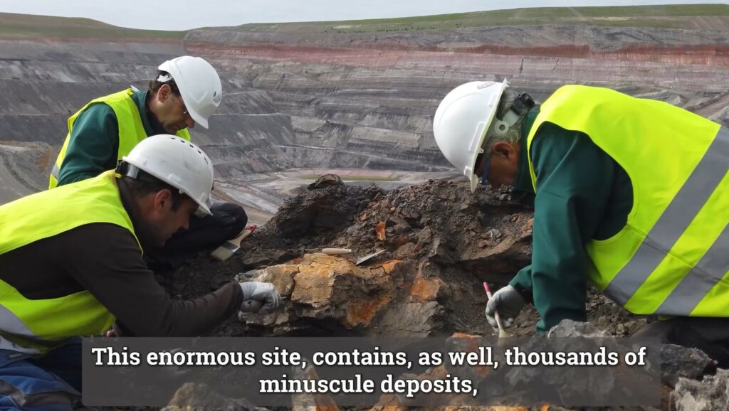 El documental narra cómo el gigantesco yacimiento con dinosaurios de la Mina Santa María de Ariño contiene, a su vez, miles de minúsculos “yacimientos”, casi imperceptibles cuando se extraen enormes cantidades de rocas para obtener carbón o para buscar fósiles de grandes vertebrados. Estos diminutos yacimientos consisten en pequeños fragmentos de ámbar que han conservado escenas de la vida de hace 110 millones de años en su interior. Ver el documental: bit.ly/DocumentalAmbarAriño