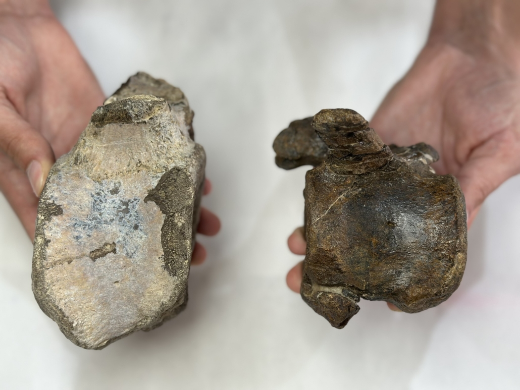 Fotografía de las vértebras halladas en los yacimientos de Veguillas de la Sierra y Riodeva (Teruel, España).